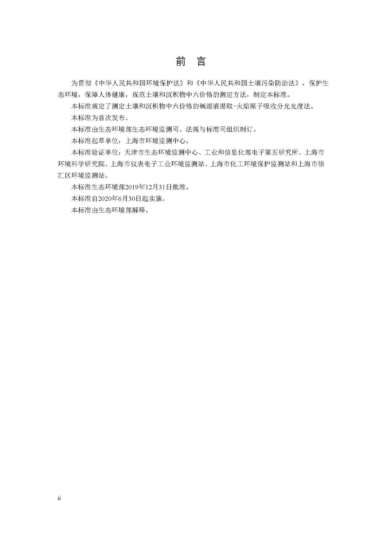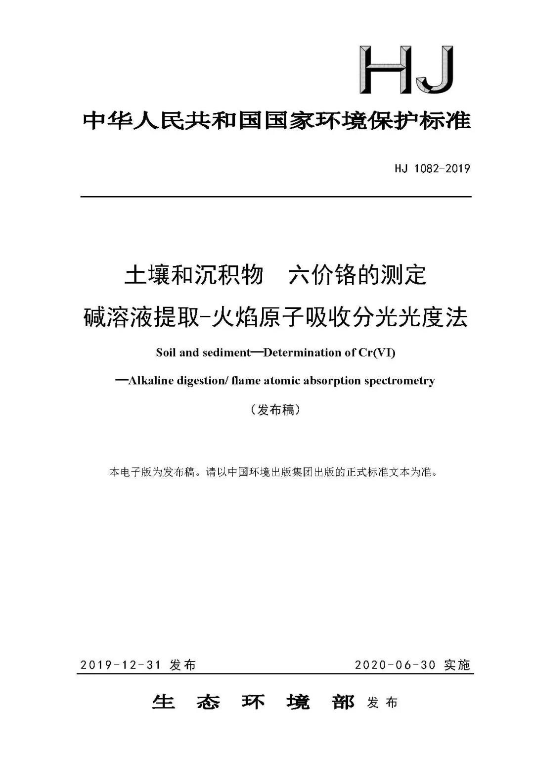 土壤和沉积物六价铬的测定方法发布(20.6.30实施)
