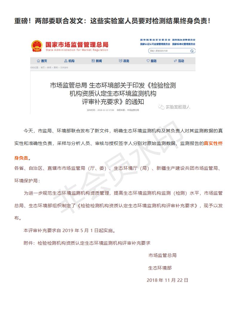 > 重磅!两部委联合发文:这些实验室人员要对检测结果终身负责!